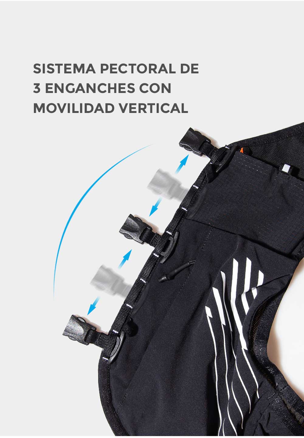 - Triple broche delantero y ajustes laterales para mayor adaptabilidad.